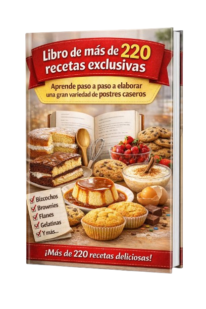 BONO N° 1Libro de más de 200 recetas exclusivas con el que aprenderás paso a paso a elaborar una gran variedad de: 🍰 Bizcochos 🍫 Brownies 🧁 Cupcakes 🍮 Flan 🥮 Magdalenas y mucho más…